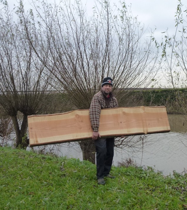 Ik denk bij het werk ook aan het milieu. Door omgezaagde bomen te verwerken tot meubels red ik het hout van de kachel. Bij het zagen gebruik ik zo schoon mogelijke brandstof. En bij de houtbewerking maak ik voor bijna 100% gebruik van stroom van zonnepanelen.